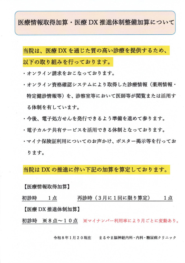 医療情報取得加算・医療DX推進体制整備加算について | 福岡県久留米市「まるやま脳神経内科・糖尿病クリニック」